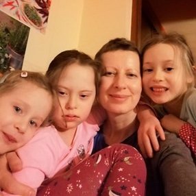 Mam wspaniałą rodzinę, męża i 3 córeczki, które mają 8, 6 i 4-latka. Wszystkie są naszą wielką radością, pomimo tego, że najstarsza z nich ma zespół Downa. Ta córeczka wymaga dużo uwagi, ciągłej rehabilitacji, nie mówi i ma dużą wiotkość mięśniową. W wychowaniu jej pomagają mi mąż i mama, a także dwie młodsze córeczki, które, choć są małe, mają nieoceniony wpływ na jej rozwój. Jestem im bardzo potrzebna.